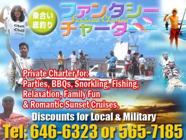 Fantasea Charters: Enjoy yourself and relax on our stable 40’ catamaran. Our cruise leaves twice daily from Agat Marina and Hotel pick up is available. All fishing and snorkeling gear is provided, as well as tea and mineral water, however you are welcome to carry aboard your preferred drinks.